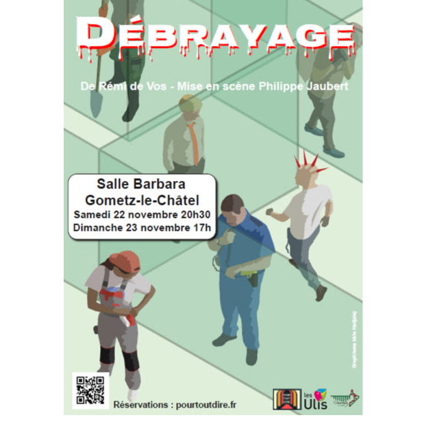 Dans le monde de l’entreprise, un débrayage marque un arrêt de travail pour appuyer une revendication. Dans Débrayage nulle grève, mais des ruptures imposées : tout au long de cette comédie à sketches, Rémi de Vos confronte ses personnages à des situations qui les font basculer dans la crise. Il met en évidence leur crainte d’être abandonnés, d’être mis en quarantaine. Il relève aussi leurs fantasmes de réussite, en utilisant une écriture féroce et incisive, parfois proche de la farce, et on en rit !