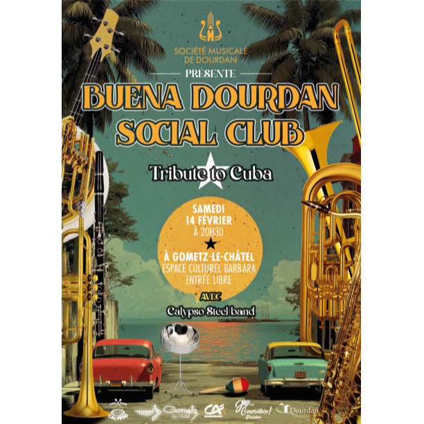 Avec le programme Buena Vista Dourdan Social Club, les musiciens vous invitent à une soirée pleine d’énergie, de rythmes chaloupés et de mélodies ensoleillées, mambo, boléros, rythmiques cubaines et musiques populaires revisités par le Calypso Steel Band et